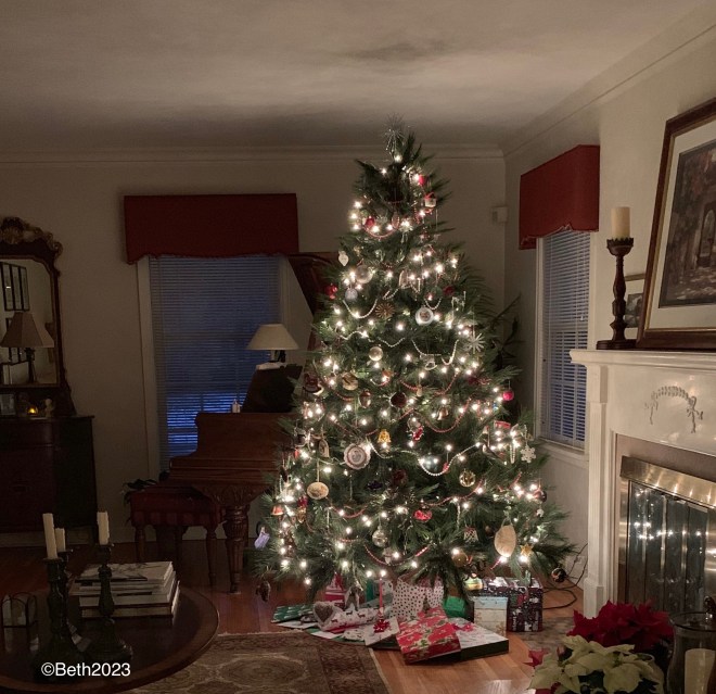 The ornaments hanging on our family Christmas tree hold memories of people we cherish, events from our lives, times past and present. Most were gifts from family members, close friends, and students whom I taught in middle school; all are meaningful.