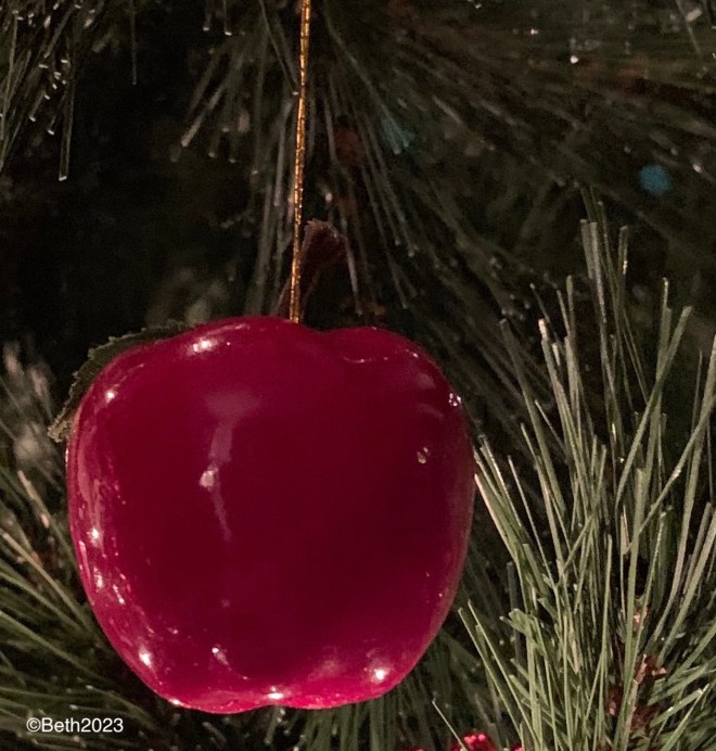 More than two dozen tiny red apples punctuate the branches with bright bursts of color. They are from former students and from my mother, who always finished her tree with the bright globes. This is our sixth Christmas without Mom. I recall the aromas of balsam fir and freshly baked Christmas cookies that scented our home each year as I grew up. Old-fashioned butter cookies, merry mincemeat bars, Christmas cake cookies and spritz are just a few of the treats that Mom baked each December. There are also jolly snowman ornaments that my dad gave to our son. They are happy-looking fellows that remind me of Dad, who died little more than three years ago. I miss him and we are so grateful for the joyful Christmas we shared together his last year.
