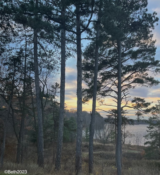 In November, the setting sun ignites red oak crowns and tints clouds with magenta, peach and rose. There’s neither summer’s long-lasting light, nor winter’s rapid descent into darkness. Dusk’s cool fingers seep in, chilling the air as the sun sinks in the southwest. In the tree tops, a group of robins roosts in a lingering sliver of sunlight. For a few moments they softly whistle their cheery song as though it were a spring evening. Time gently slips away in shadows of amethyst.
