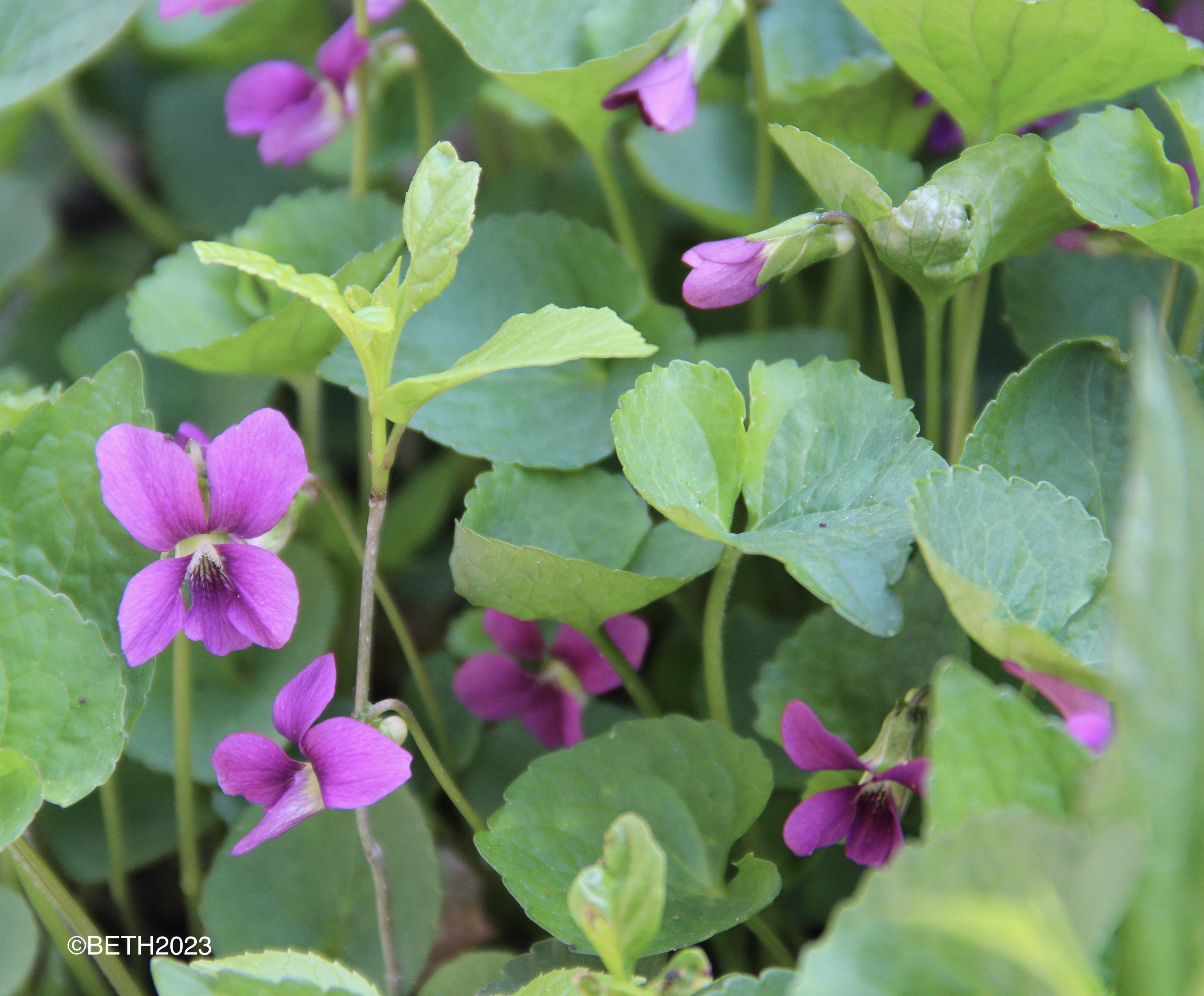 Leave a few violets tucked into your garden so that fritillaries can lay their eggs on them in the fall. Caterpillars will feed on them in the spring.