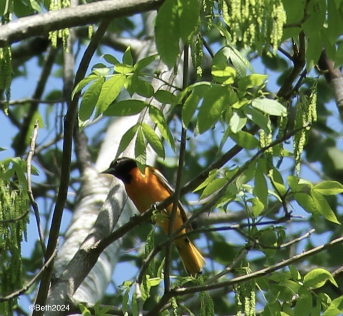 I saw my first Baltimore oriole in the Twin Cities when I was five or six. Graceful American elms lined every street then, and were the preferred nesting tree of orioles. Since the demise of the elms by Dutch elm disease, many of the orioles I see and hear are in the woods at our cabin. In the city, I find them most often when I walk next to the Mississippi River and around the Minneapolis lakes. Their call is described as paired, pure flutelike notes. They’re easy to listen to and their song contains fewer harsh notes than other oriole species.