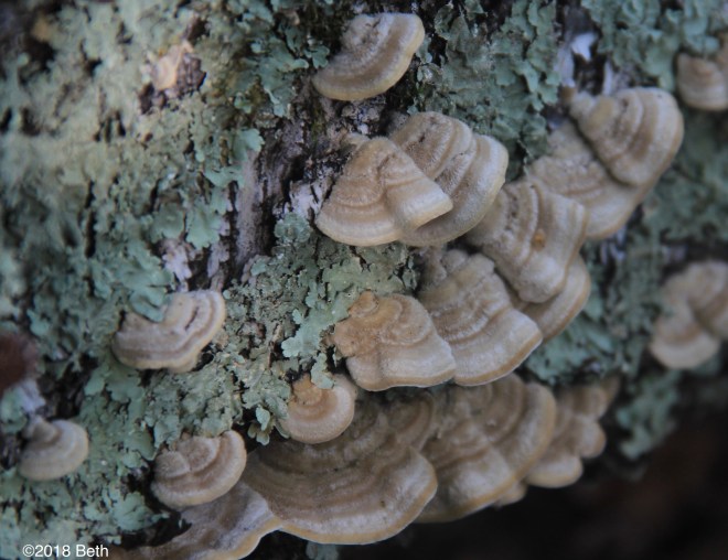 Though some fungi are harmful to plants, humans and other organisms, many provide antibiotics and food in addition to forming nourishing soil. So the next time you spot a fungus and think it’s gross, remember the benefits that many fungi provide to nature, the food chain and to us. Here are a few fungal fruiting bodies that I’ve seen growing in the woods this autumn. Fungi often are difficult to identify, so I don’t know all of their names, but I appreciate their shapes and colors.