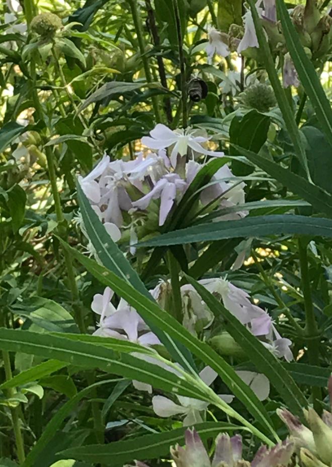 Besides monarda, there are other names for the plants. Bergamot applies to both species. Oswego tea and bee balm apply to the red M. didyma, but the term bee balm is also loosely used for M. fistulosa. I thought it referred to how happy the bees are when they’re in the monarda, but according to a book about wildflower lore, a salve or balm was made from the leaves to treat bee stings. Monarda plants also were used by many Native American people to treat headaches, abdominal problems, colds and other bronchial issues. Both species were used as a tea substitute in the American colonies after the Patriot Sons of Liberty dumped 46 tons of British East India Tea into Boston Harbor in December 1773.