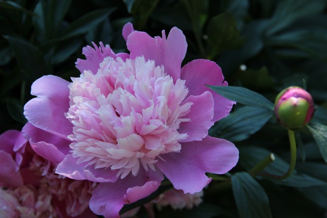 Mom’s simple bouquet’s were perfect. Whether peonies, or other flowers, she fashioned a simple, understated arrangement of whatever bloomed in our back yard. I wish that I had photos of them, but only the memories remain — and they are mine alone. Mom does not remember much of the past because she has dementia. So, I tell her about the white peony bushes that grew at just the right height for me to breathe in their heavy perfume and stroke their silky petals. I speak of warm afternoons when I was very young and how we lingered in our garden to watch bees in the flowering almond, and looked to see if new seedlings had popped through the soil. I speak of the giant basswood tree that shaded the back yard and scented the evening air. Most importantly, I tell Mom how much I loved being with her in the garden.