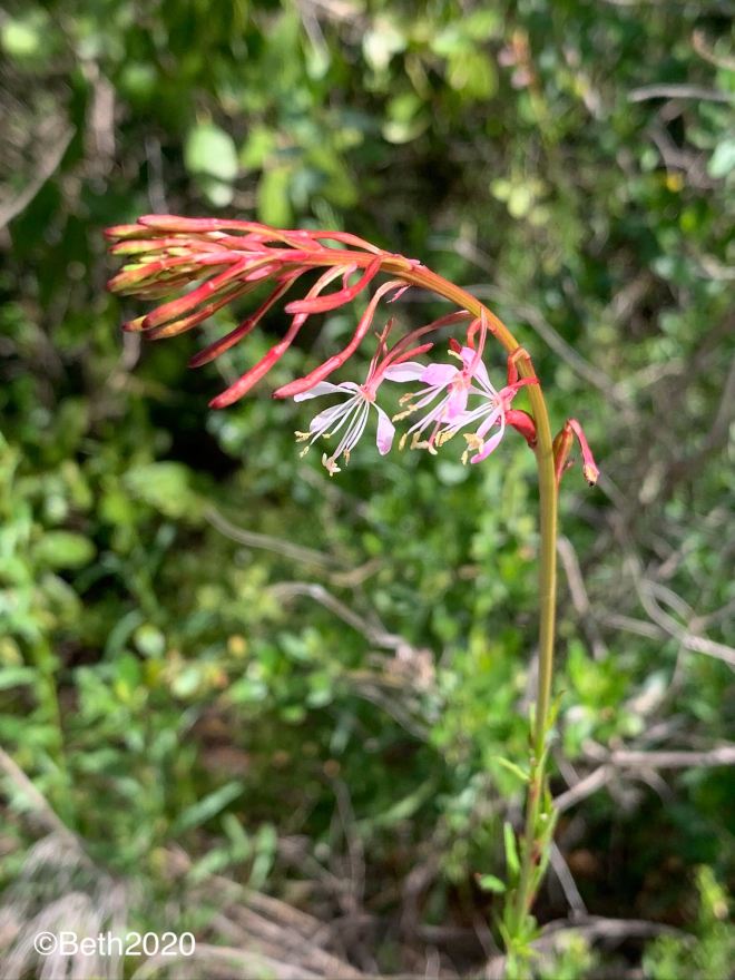 Southern beeblossom (Gaura angustifolia) flowers open white at night and turn pink the following day.