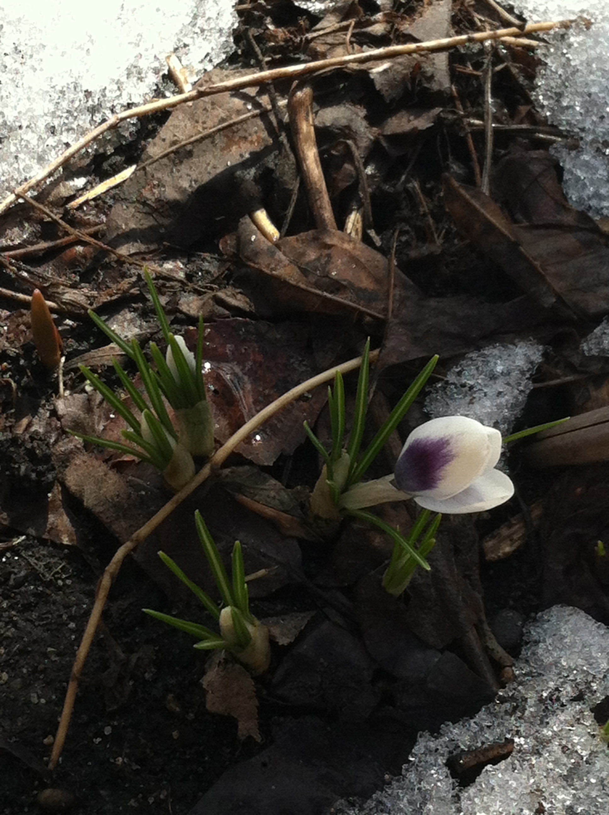 Striped squill (Puschkinia scilloides), Siberian squill (Scilla siberica) and crocus bloom before last week’s snowstorm.