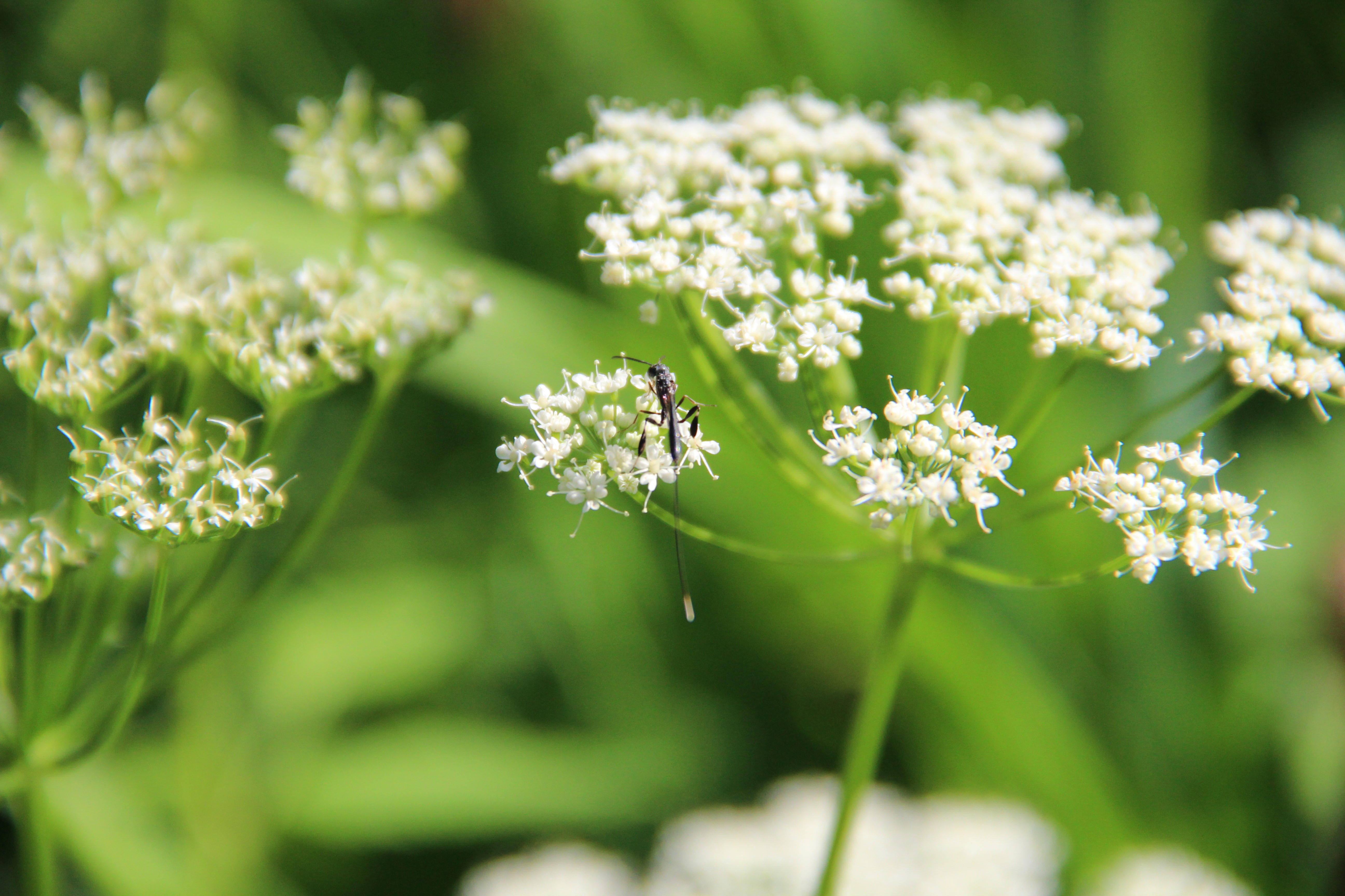 One recent evening, a thread-thin burst of movement caught my eye in our garden. It was a wasp — slender, agile and fast as it nectared in the early evening sun; and unlike most wasps, it held its abdomen at an unusual vertical angle. It was too thin and small to fit into the familiar wasp categories. After searching several resources, I identified it: a carrot wasp in the family Gasteruptiidae spp. (There are 15 different species in North America.) Adults feed on the nectar and pollen of plants in the carrot family, especially wild carrots and parsnips.